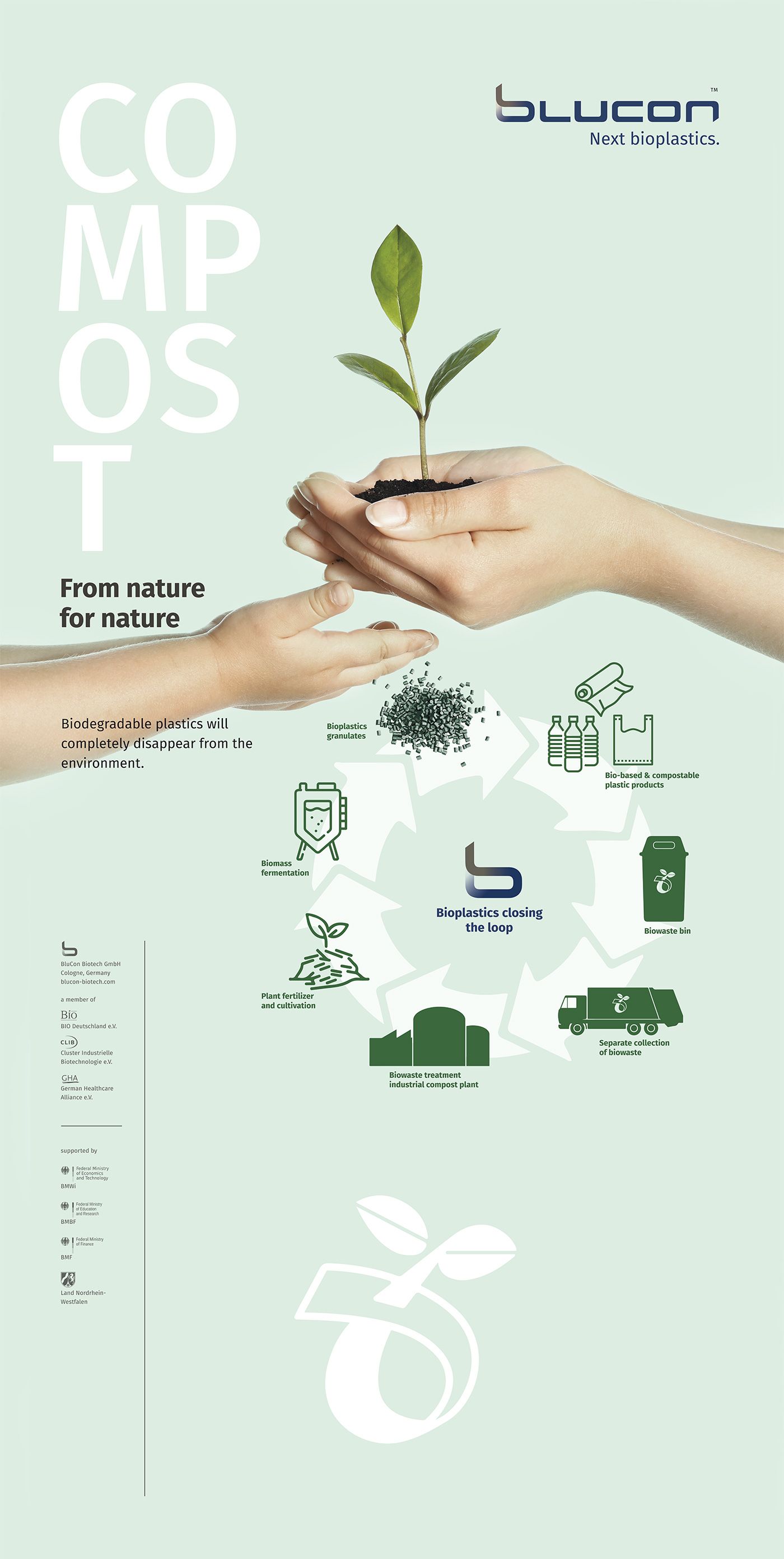 blucon's Vision: Erdölbasierte und biologisch nicht abbaubare Kunststoffe durch den biologisch abbaubaren Kunststoff PLA, Polymilchsäure, zu ersetzen und einen Beitrag zur Kreislaufwirtschaft zu leisten. PLA wird heute in kleinen Mengen hergestellt, weniger als 1 Million Tonnen/Jahr, verglichen mit 390 Millionen Tonnen Kunststoffen aus fossilen Rohstoffen.